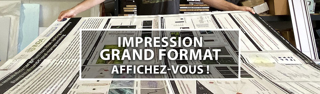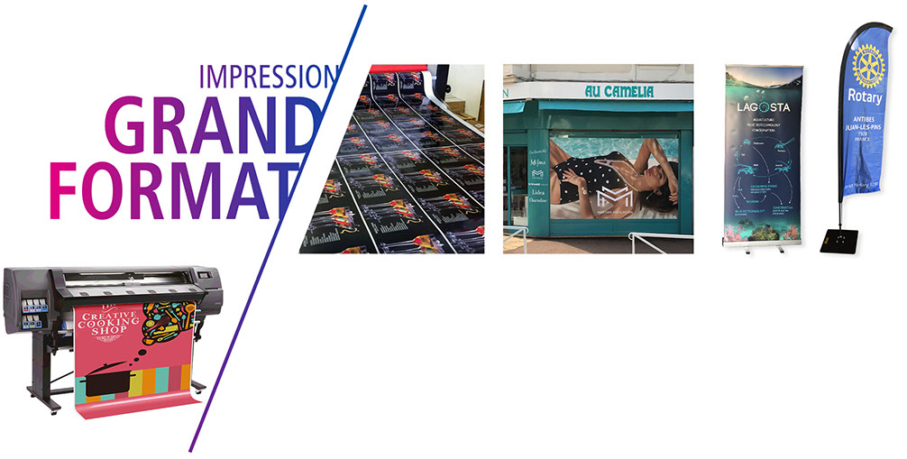 Impression grand format écologique de bâche, banderoles, kakemono, roll-up, poster, adhésifs, vitrophanie, étiquette.